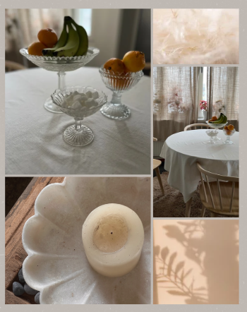 Jag gillar när saker får andas. När det finns luft mellan möblerna, men värme i detaljerna. När ett runt bord med duk säger ”välkommen hem” och ett kristallfat säger ”men sitt gärna rakryggad”.